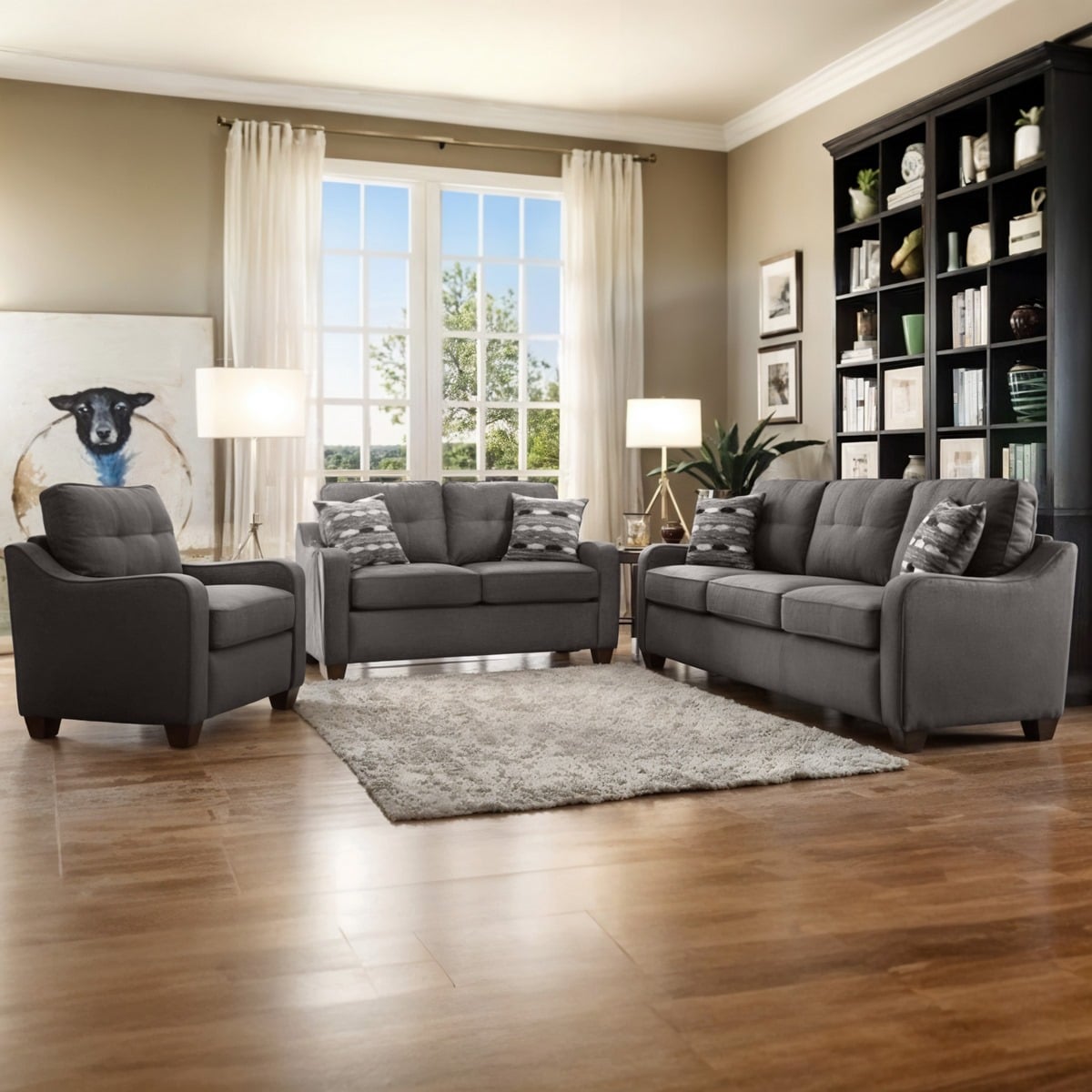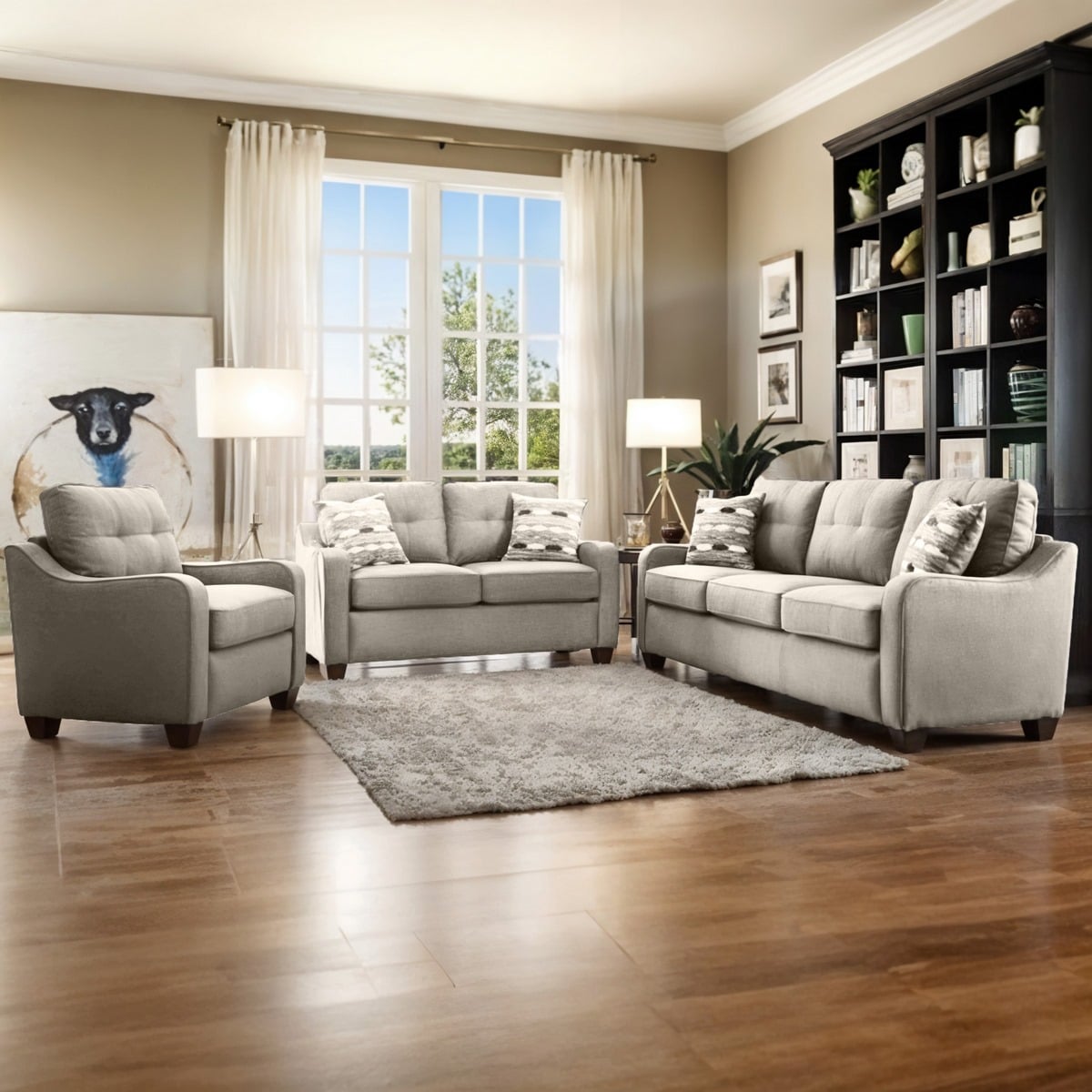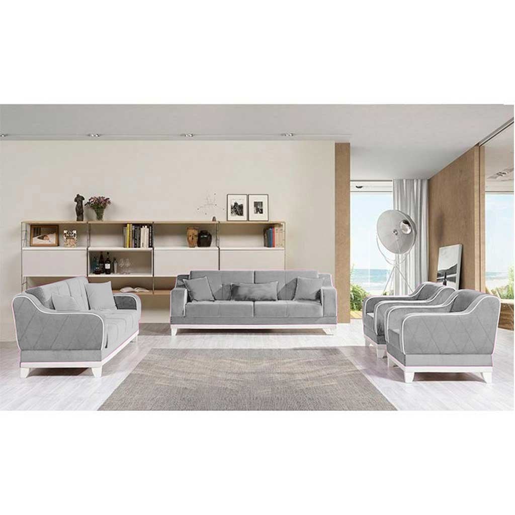 غرفة معيشة خشب زان و موسكي وقطيفة 4 قطع – رمادي