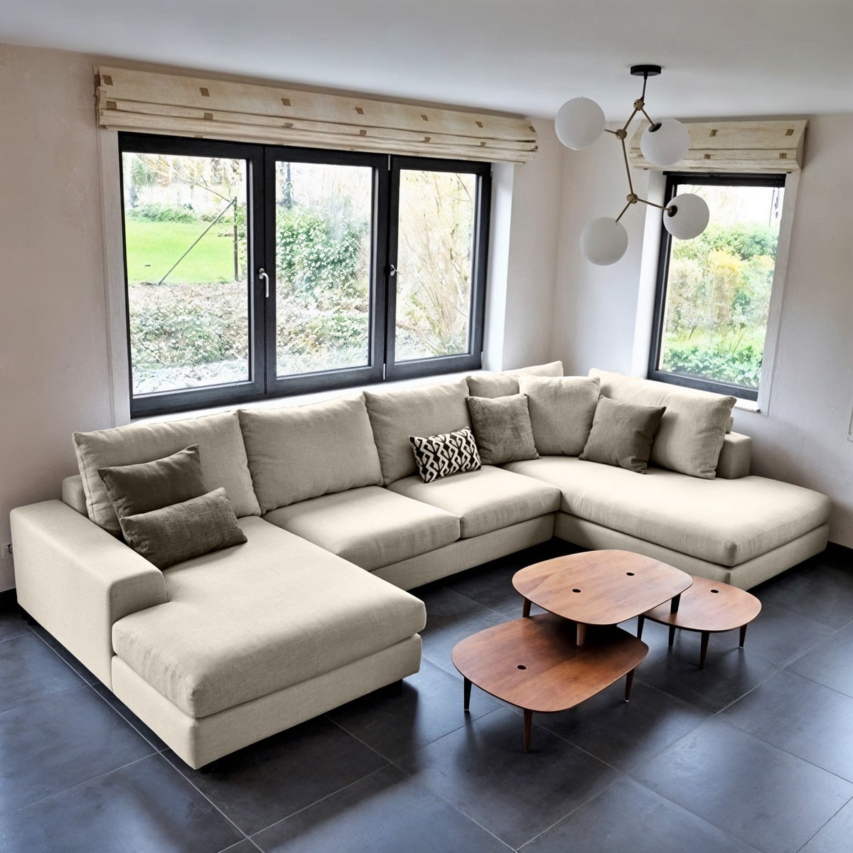 كنبة دائرية خشب طبيعي وكتان
