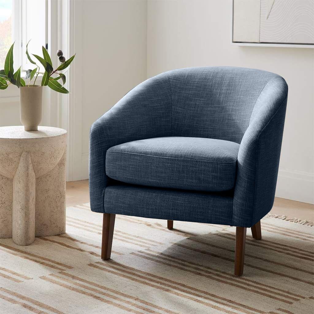 كرسي بذراعين خشب موسكي و قماش كتان