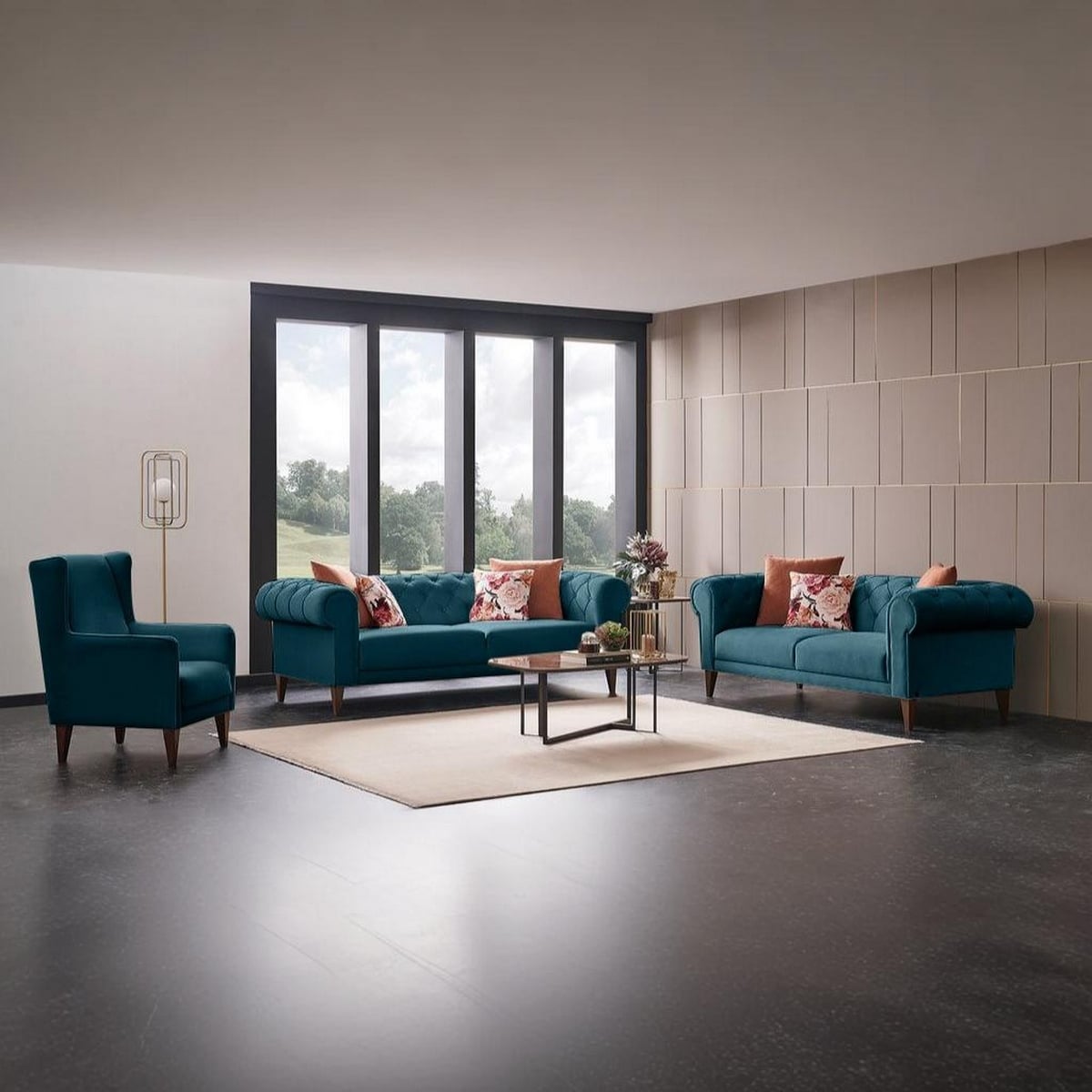 انتريه مودرن خشب زان وقطيفة 3 قطع